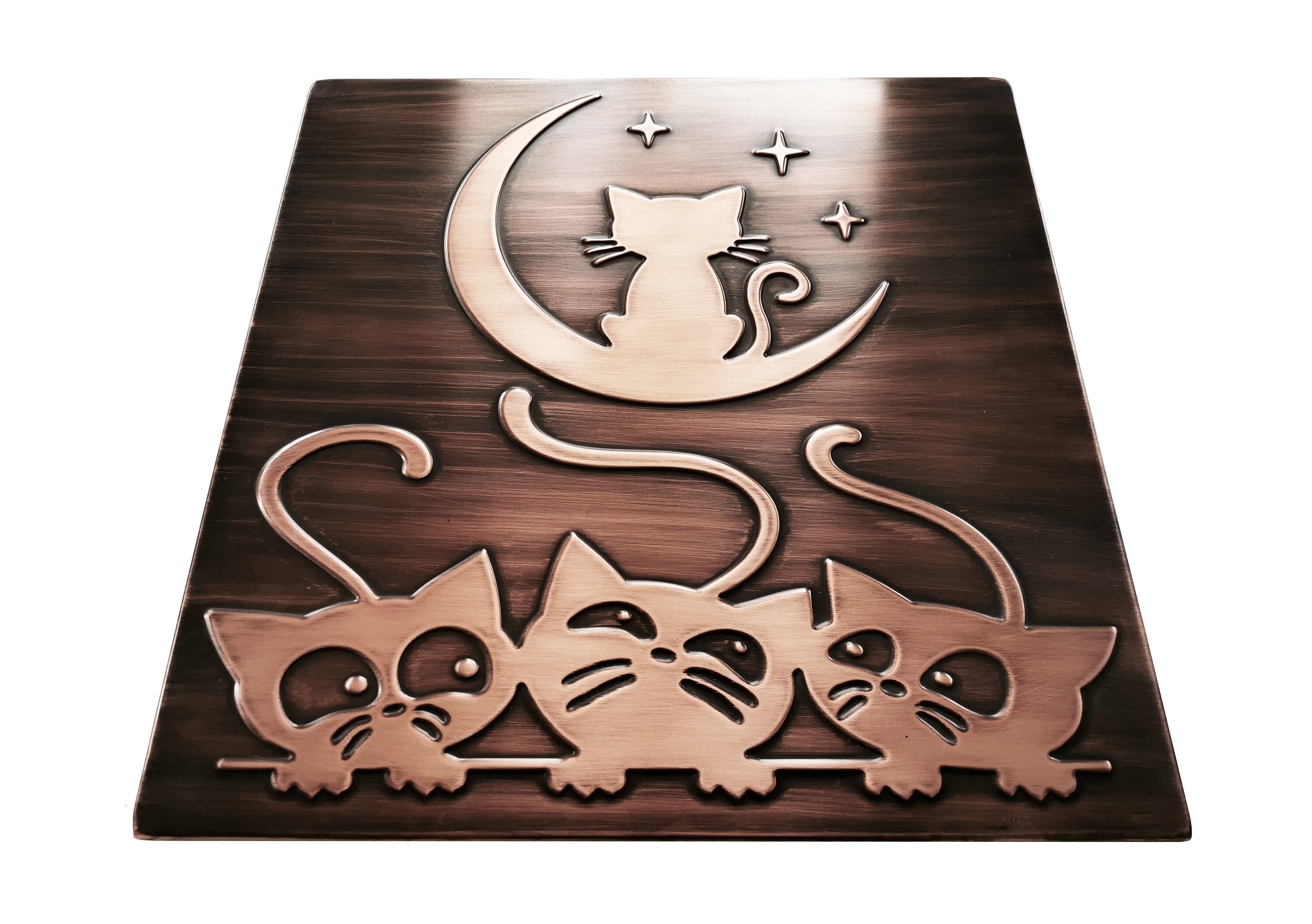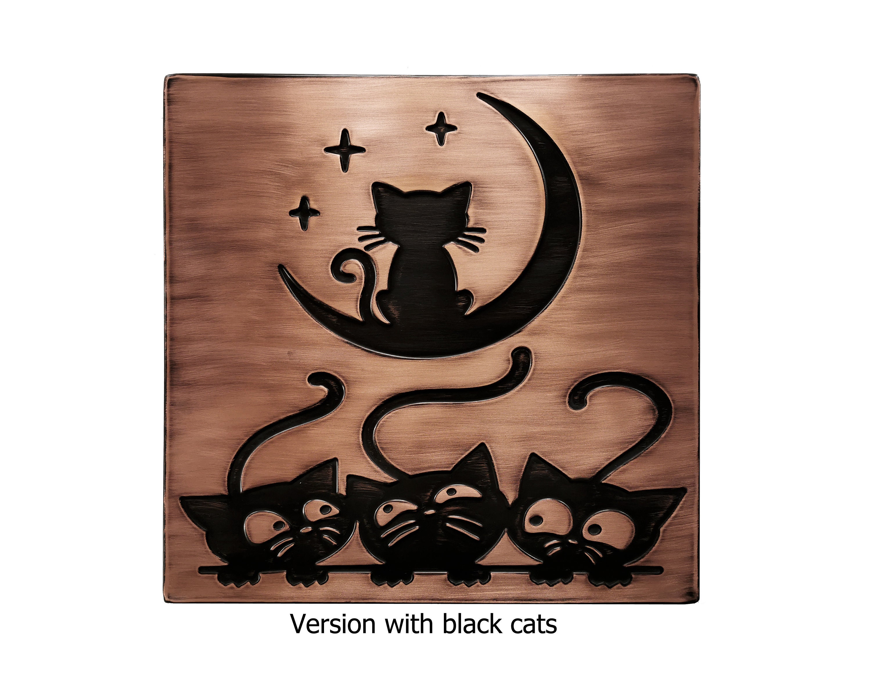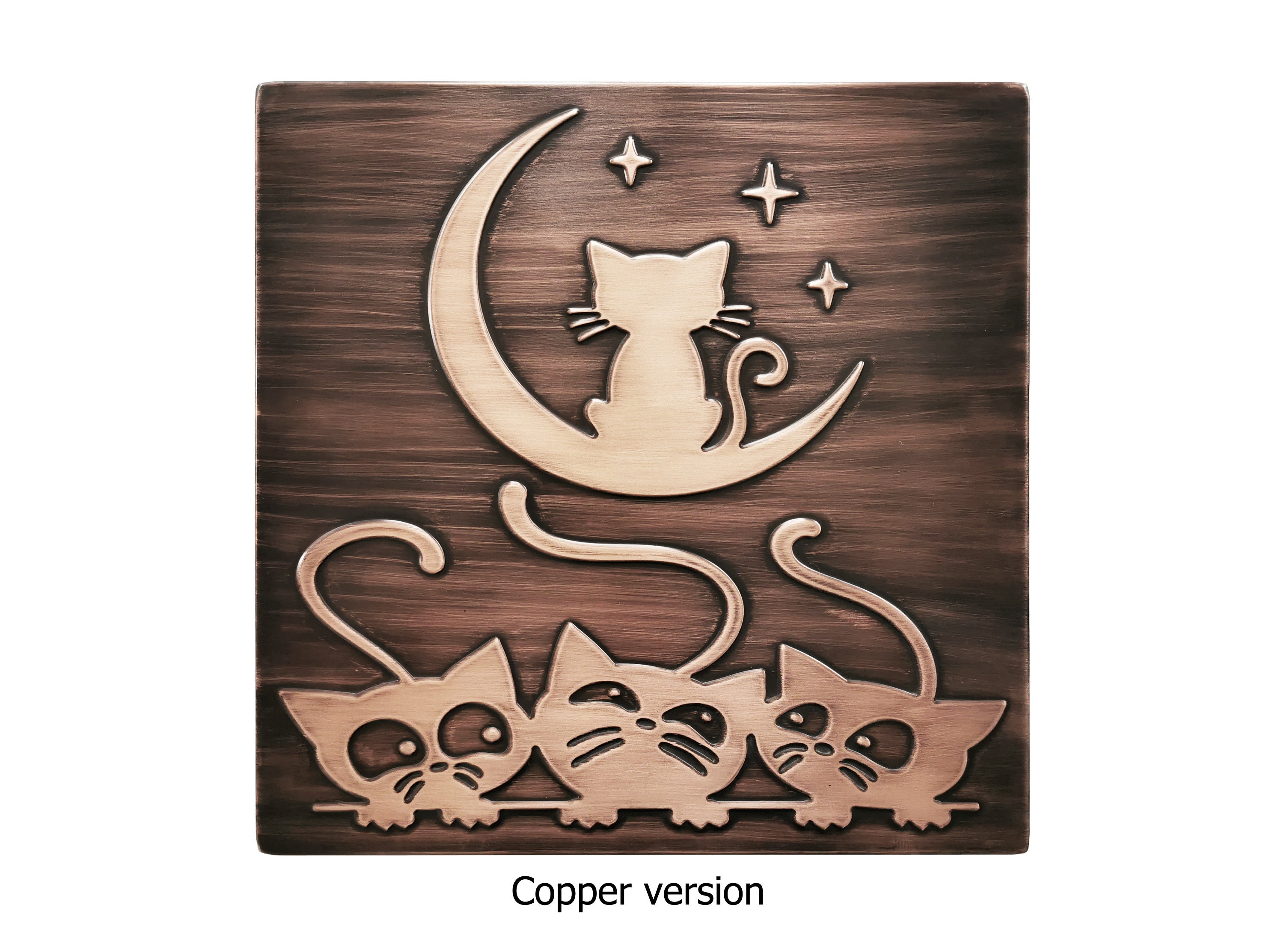 Cats and moon tile - 100% Copper, Stainless Steel or Brass.
