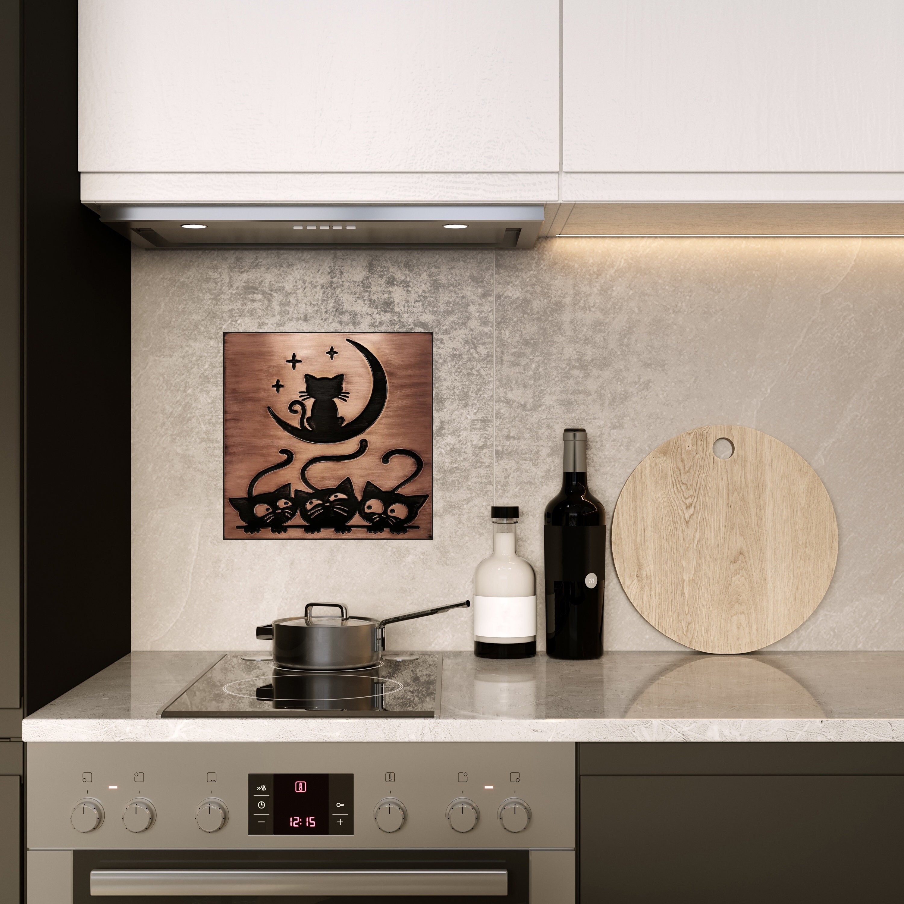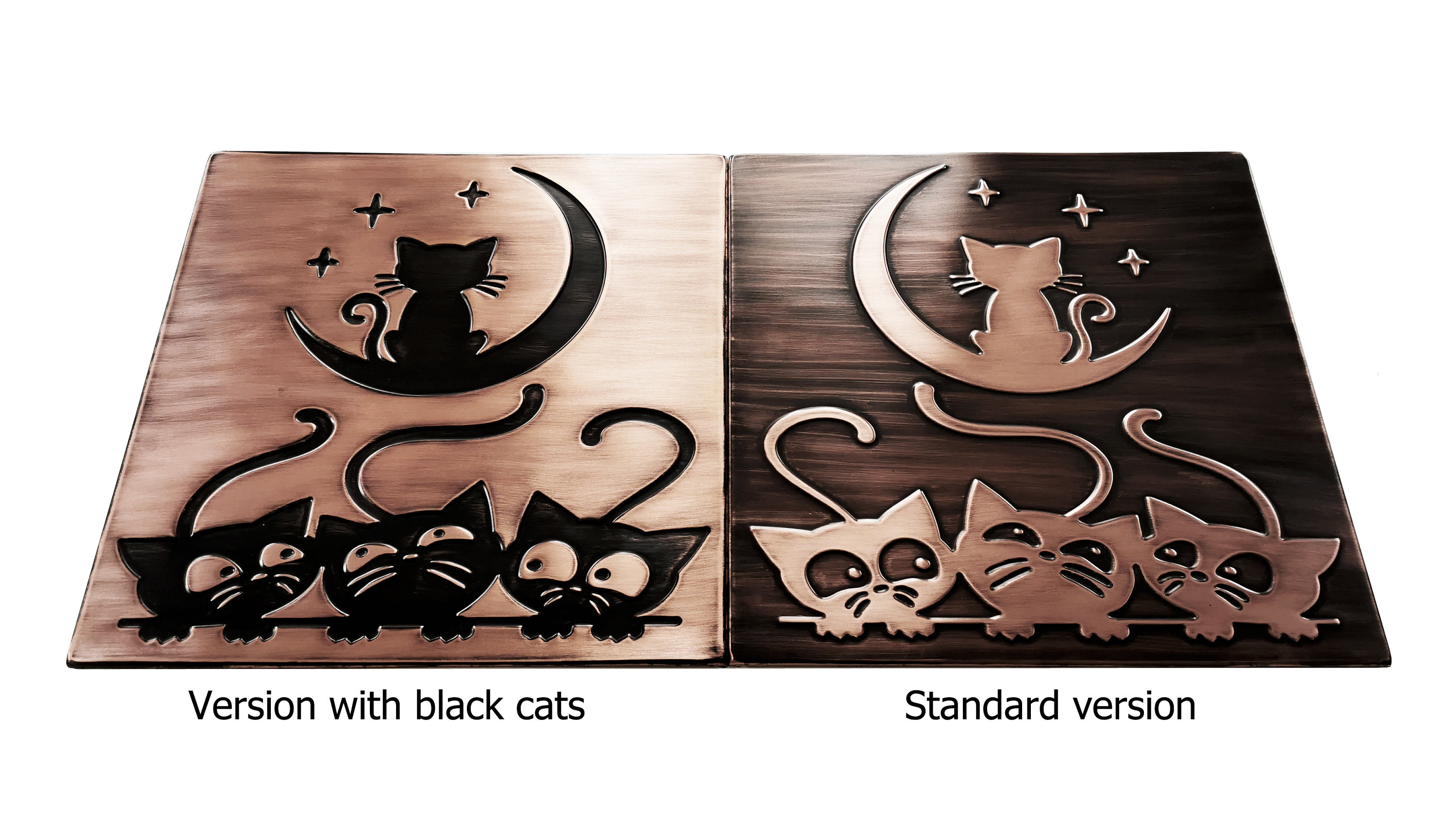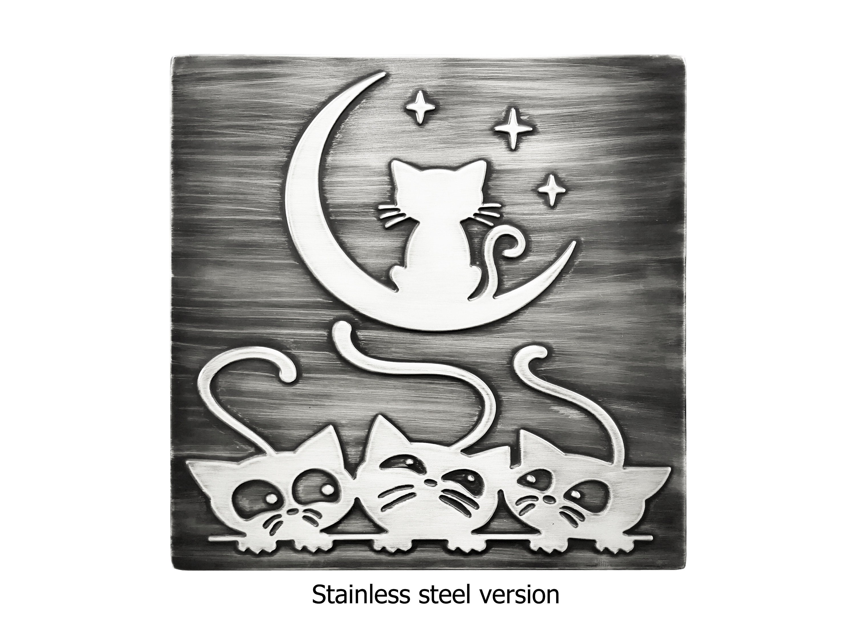 Cats and moon tile - 100% Copper, Stainless Steel or Brass.