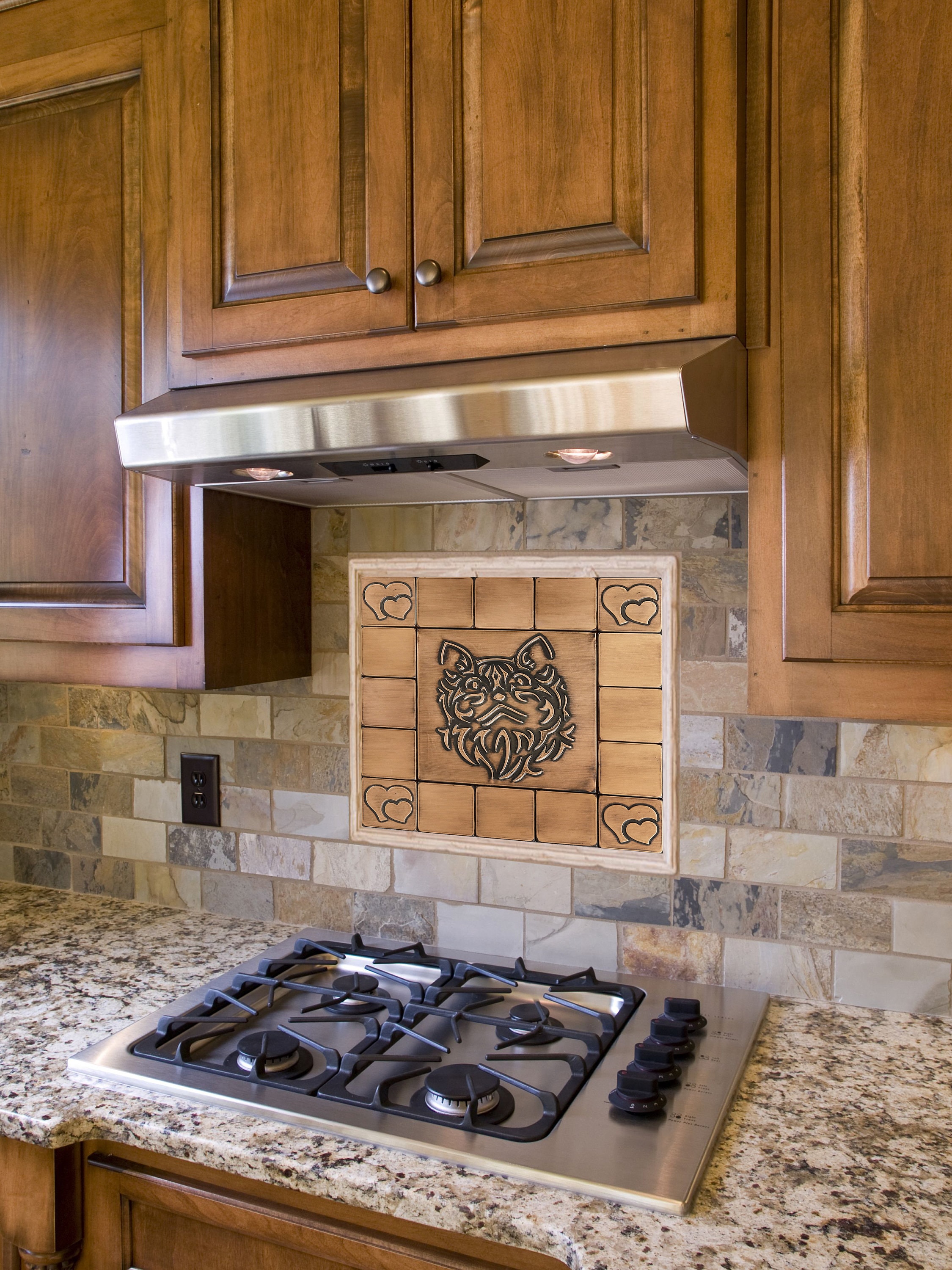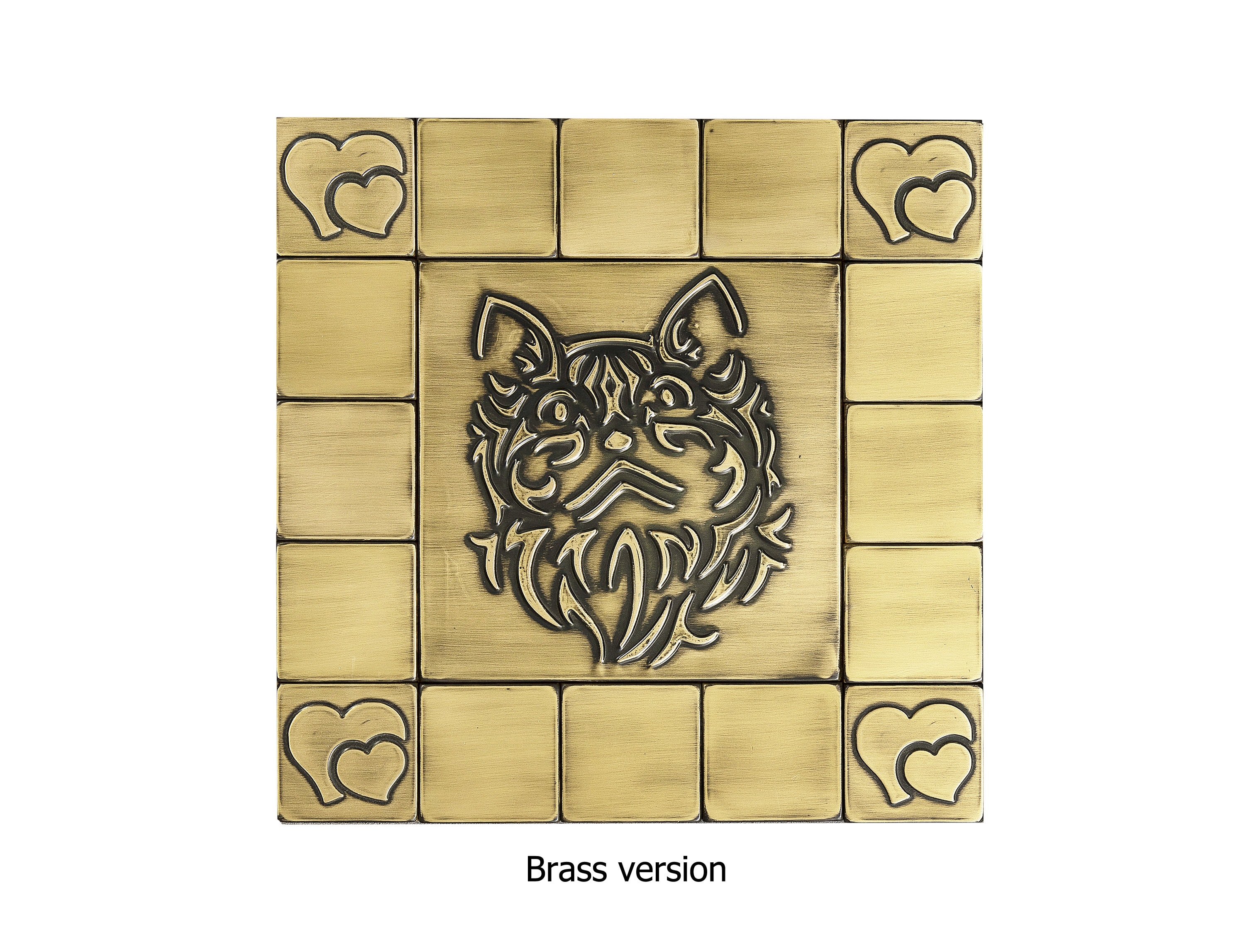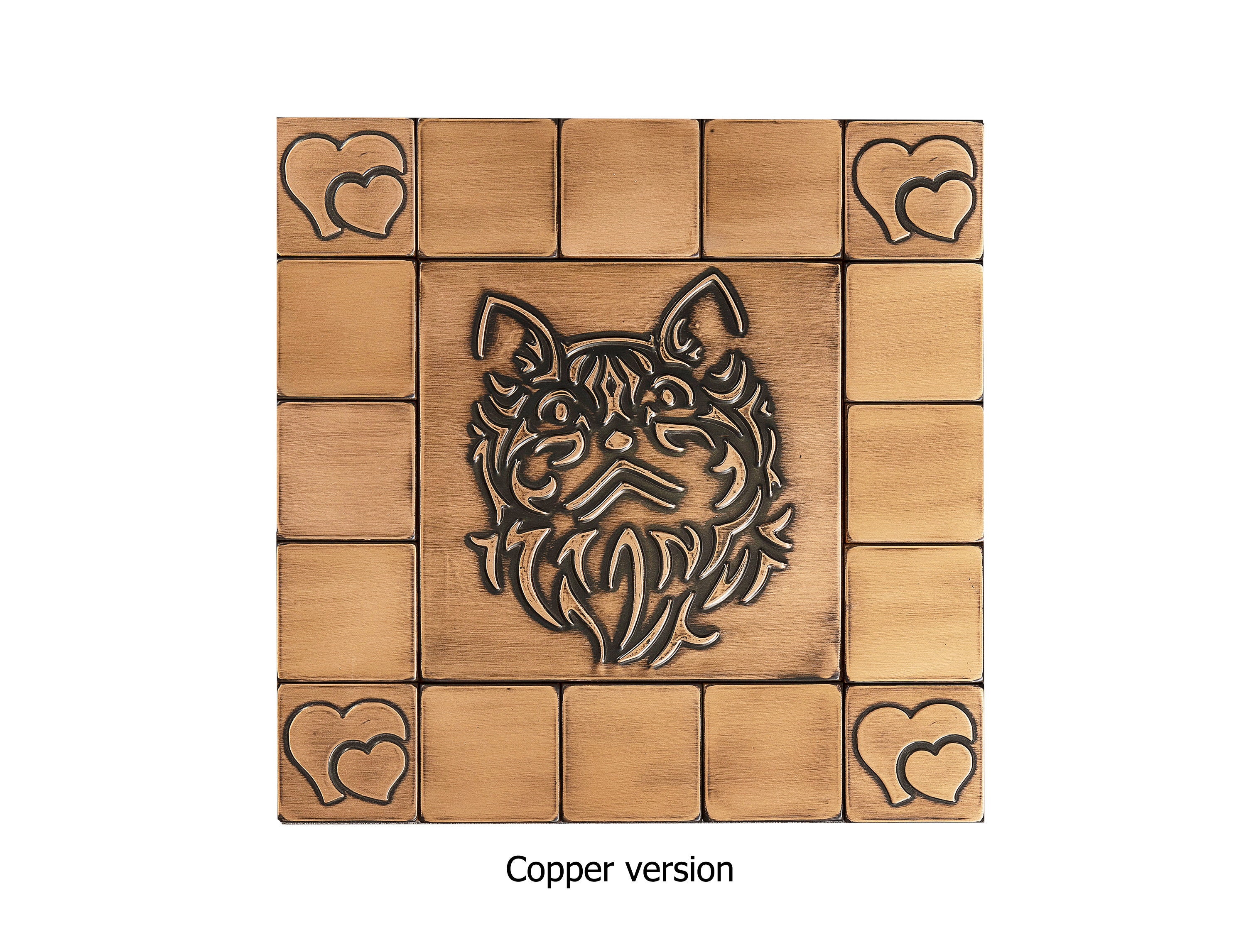 Cute cat - Set of 17 Handmade tiles - 100% Copper, Stainless Steel or Brass. The perfect backsplash for cat lovers.