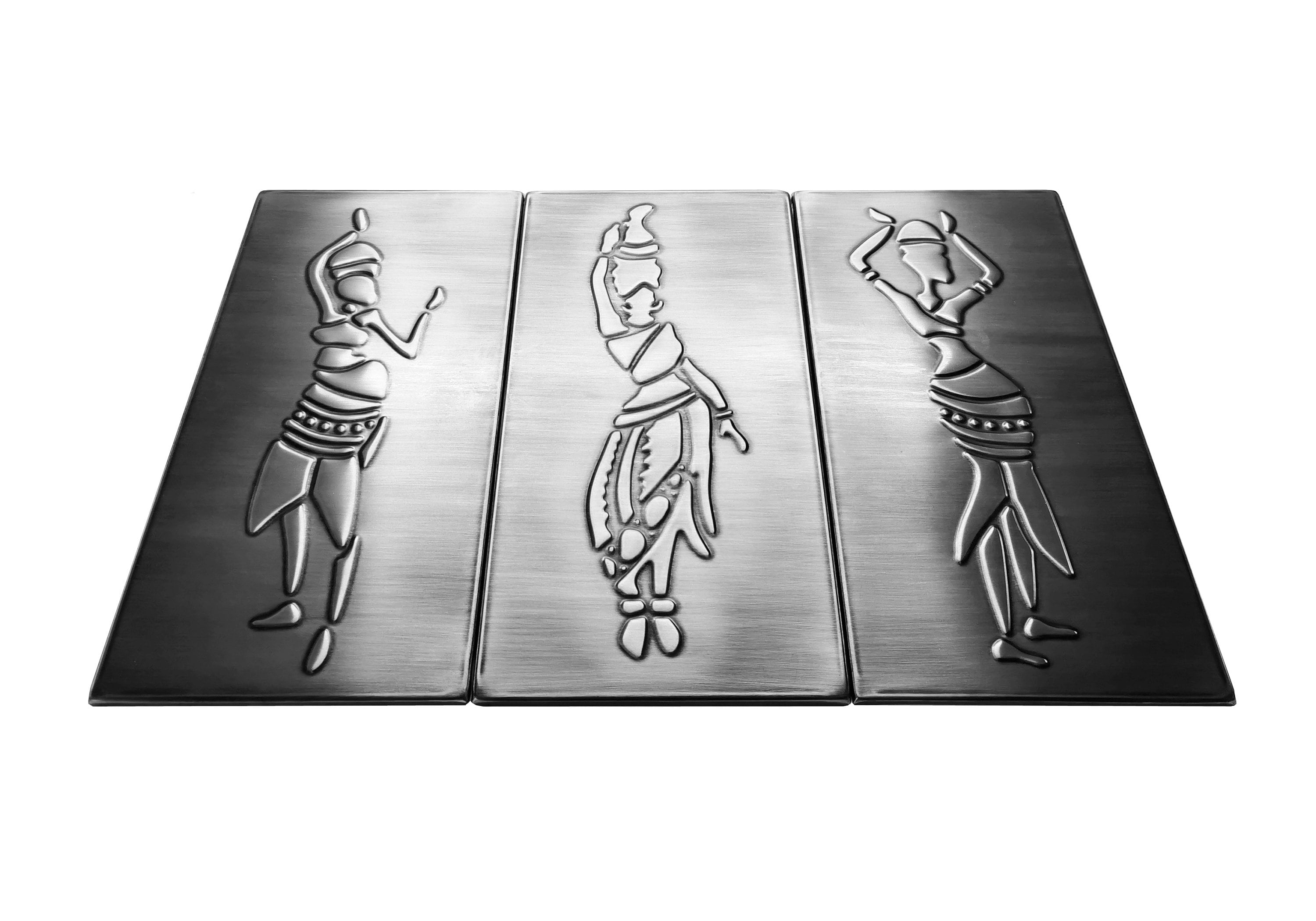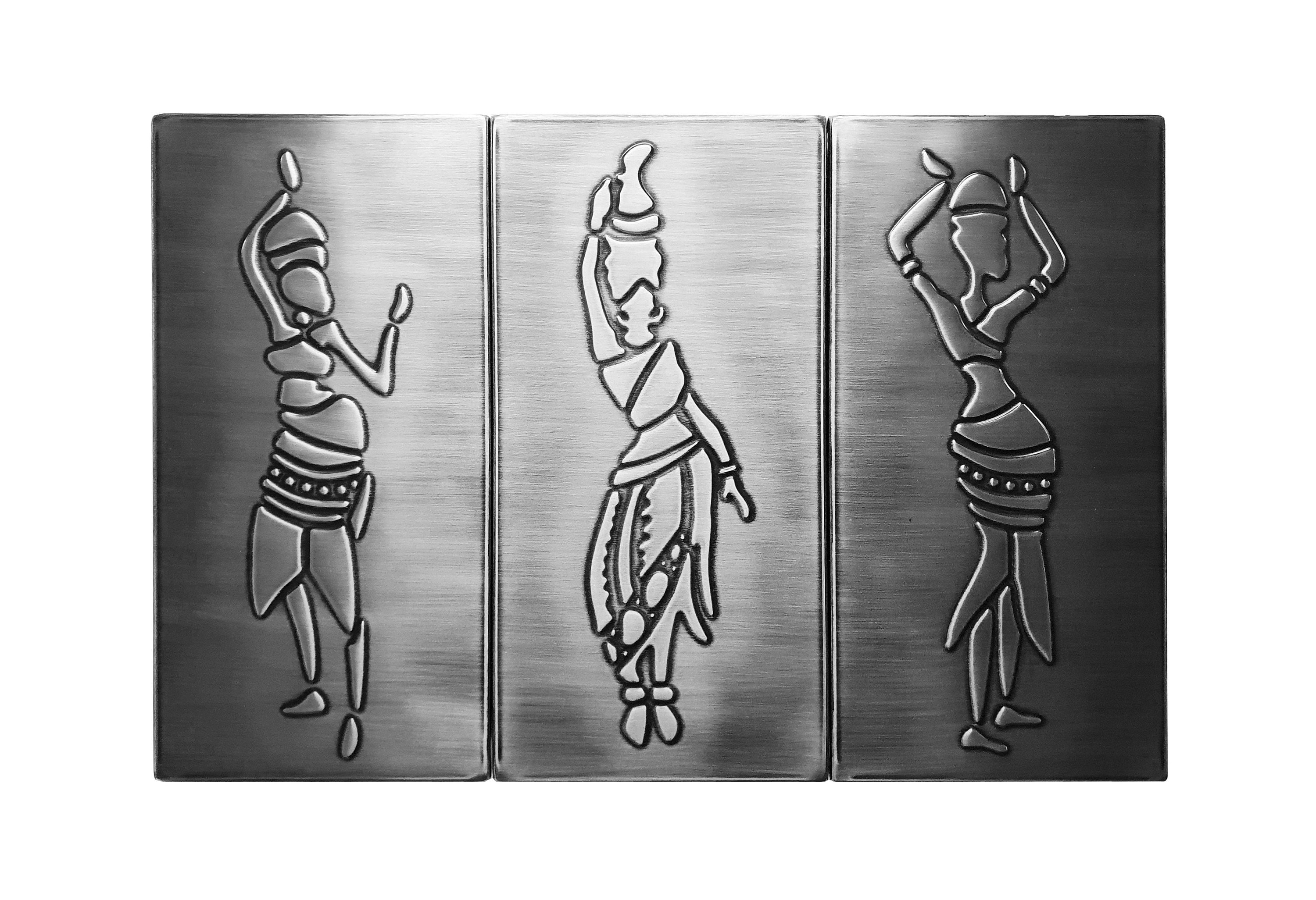 Three African woman tribal - Set of 3 Handmade tiles - 100% Copper, Stainless Steel or Brass. The perfect backsplash for Africa Lovers