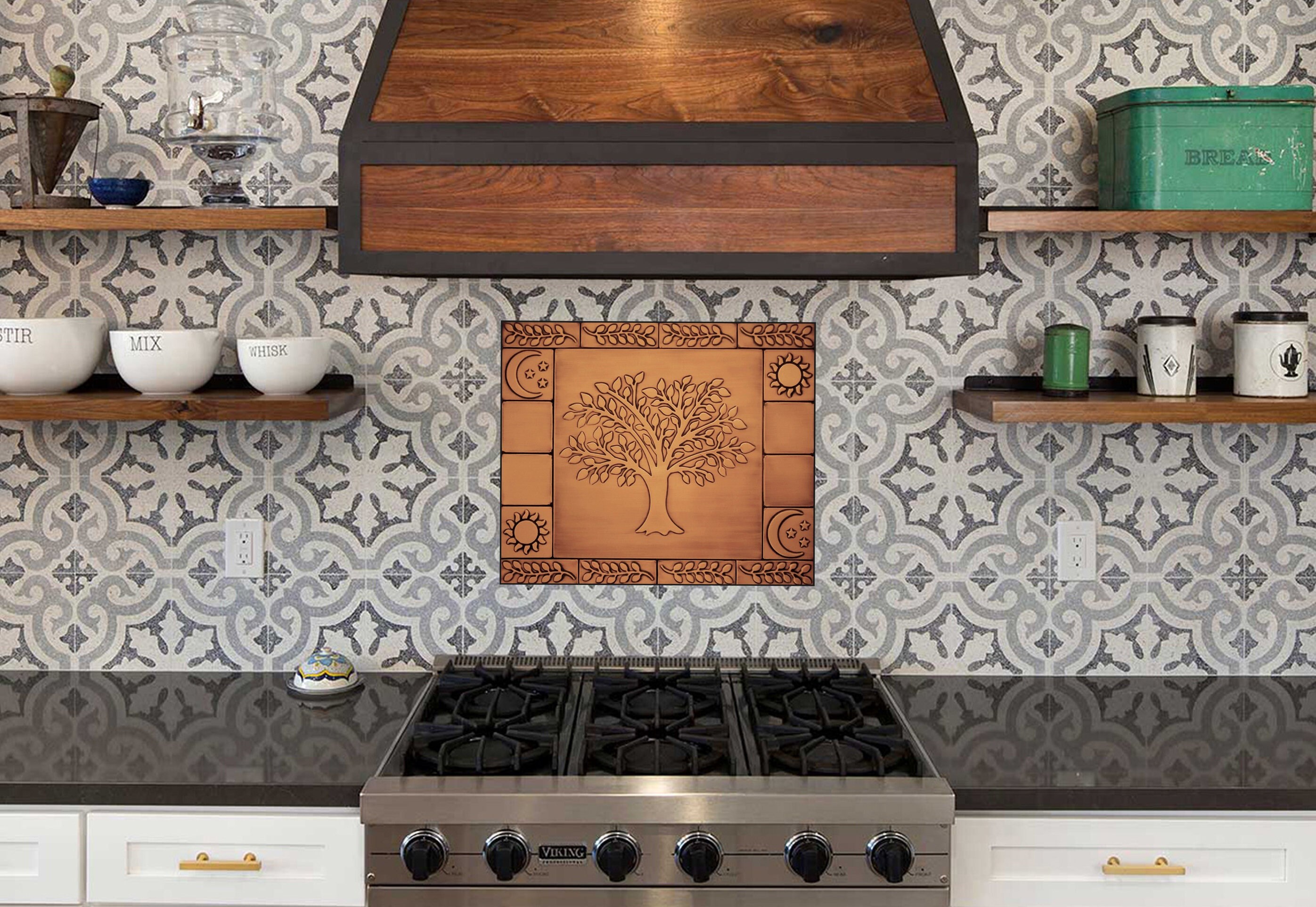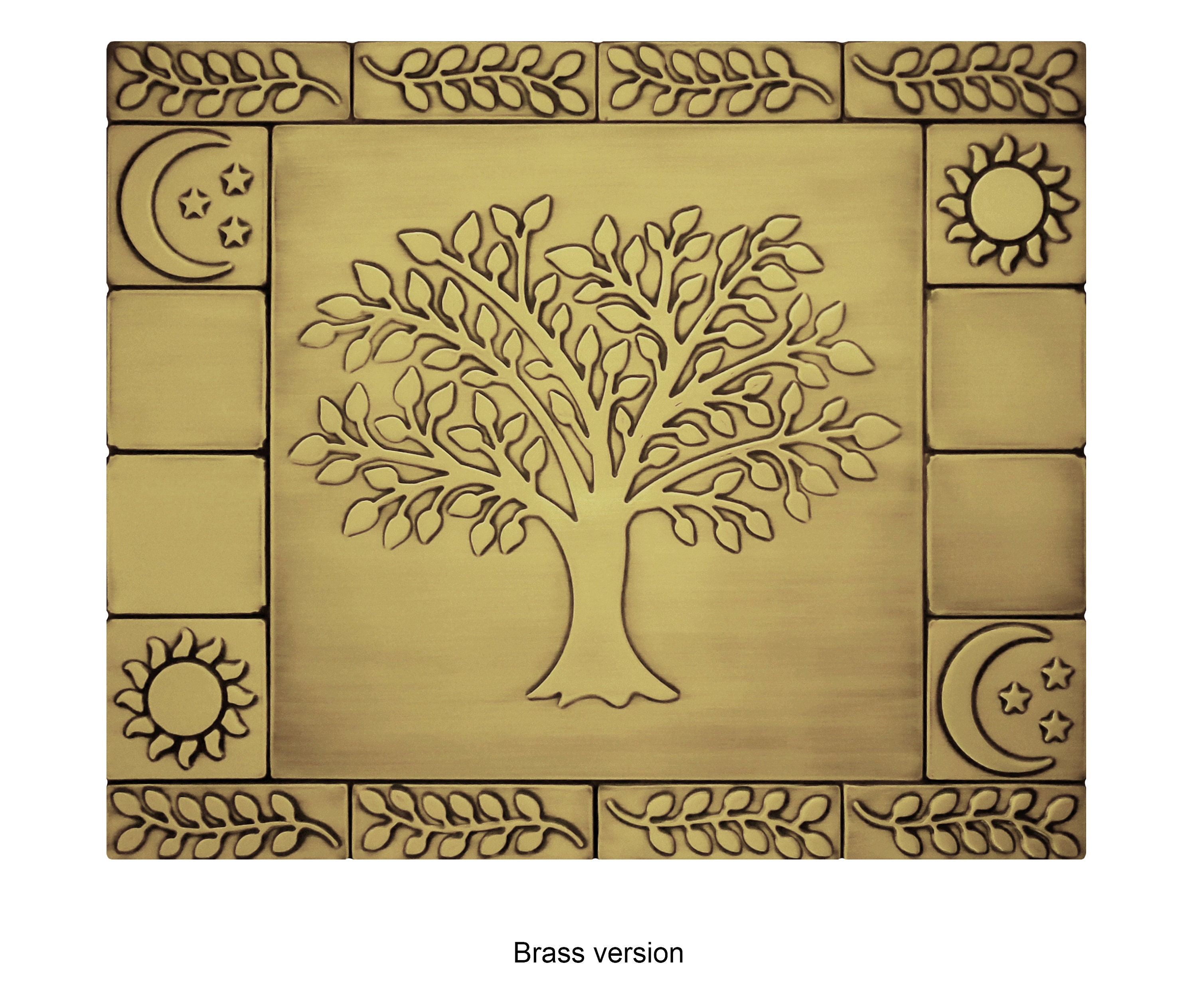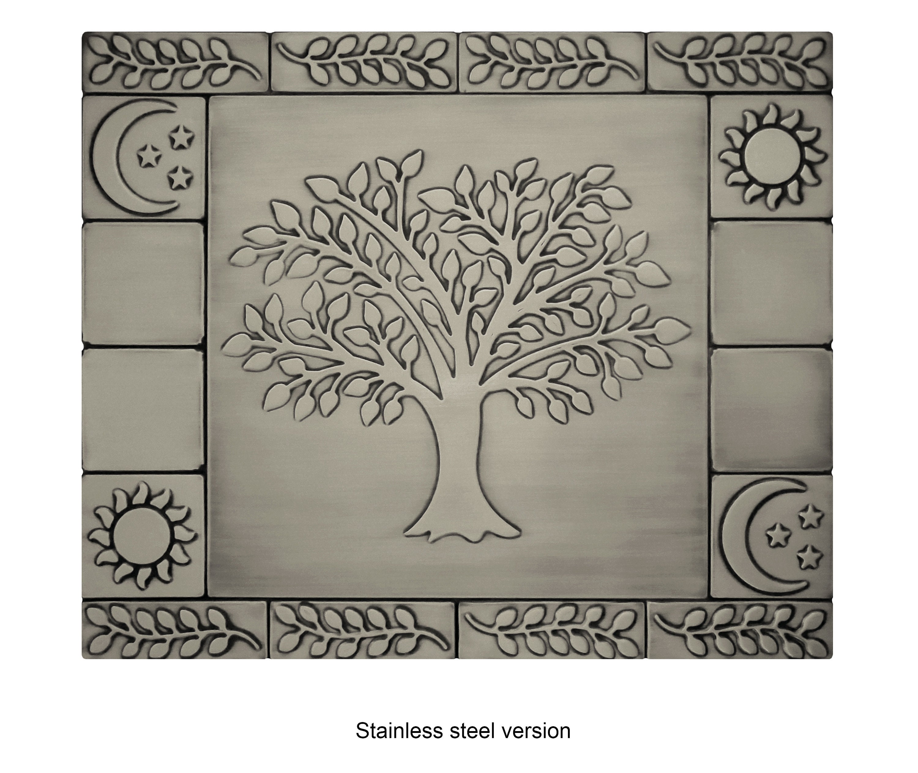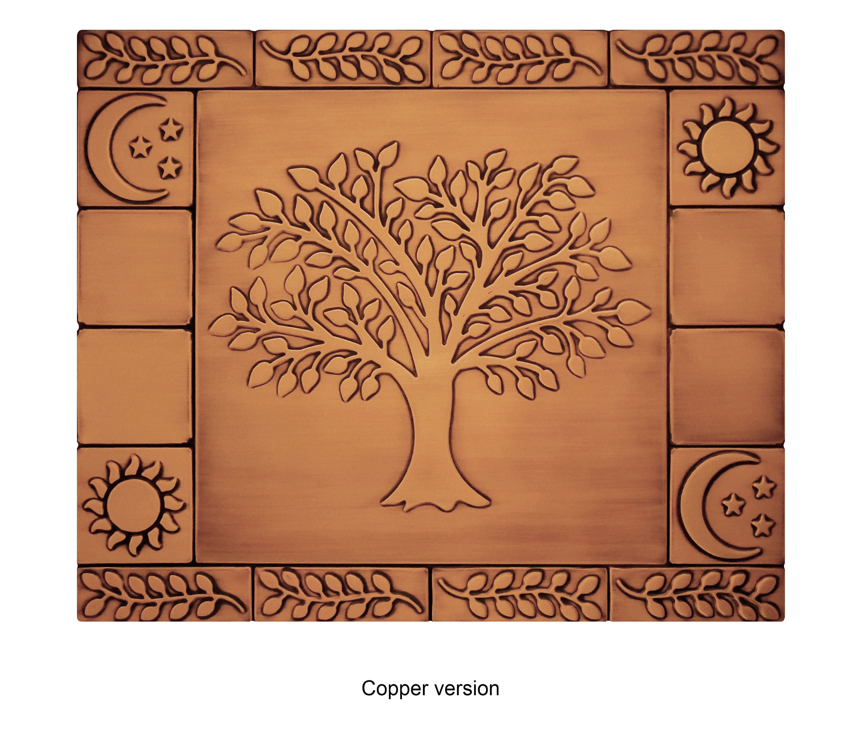Beautiful Tree of life with olive branches, sun and moon, Set of 17 Handmade tiles - 100% Copper, Stainless Steel or Brass